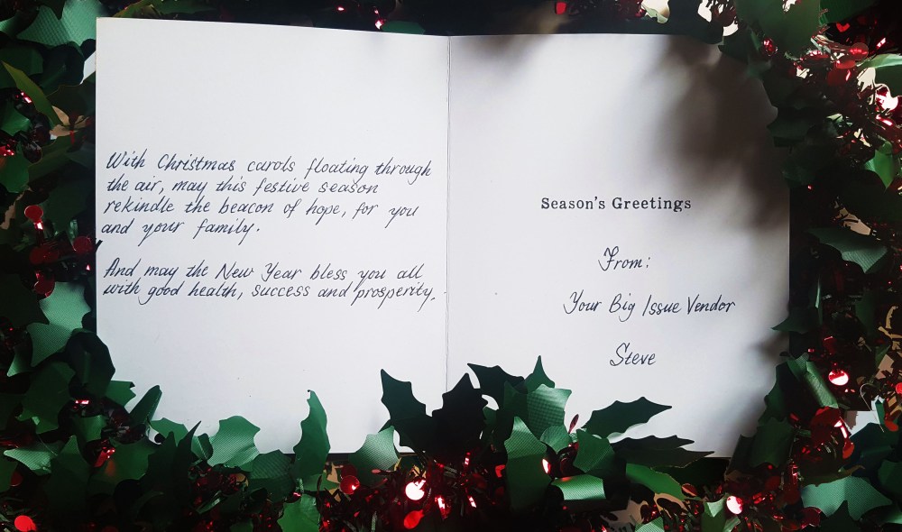 Last but not least, and bringing it back to Christmas, I will share a little personal story of mine. About five years ago, I used to work in central London and would walk to the office from Waterloo Station. I would walk across the Golden Jubilee Bridge everyday and pass a man named Steve selling the Big Issue at the end of the bridge, who was always smiling no matter what the weather, and wishing everyone that passed him a pleasant day. After some time of just saying “good morning” to him as I walked past, I began to linger a little longer to have more of a conversation with him. Spending more time there, I was pleasantly surprised to see that several other businesspeople would also pause to chat with him and wish him a good day, despite being in a rush to get to work.